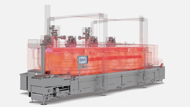 The new GEA CookStar First features a twin-zone spiral configuration with integrated booster impingement. By combining horizontal and vertical airflow, the system achieves more uniform heat transfer across the conveyor belt. According to GEA, the core temperature variation across the belt is limited to approximately 1°C, compared with deviations of up to 6°C in conventional ovens. This uniformity enables cooking times to be reduced by 10 – 30 percent while maintaining consistent product color and internal doneness. Throughput can reach up to 1,700 kg per hour, and more stable thermal conditions contribute to yield improvements of up to three percent.