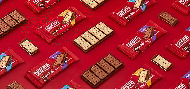 The Chocobakery portfolio includes Choco Trio, a chocolate bar combining milk chocolate with crunchy biscuit pieces, Choco Cookies, featuring a soft and buttery dough along with creamy chocolate fillings, and Choco Biscuit, a perfect combination of chocolate and biscuit. The three product ranges are available in different varieties and formats, under the popular Nestlé brand but also strong local brands such as Garoto.